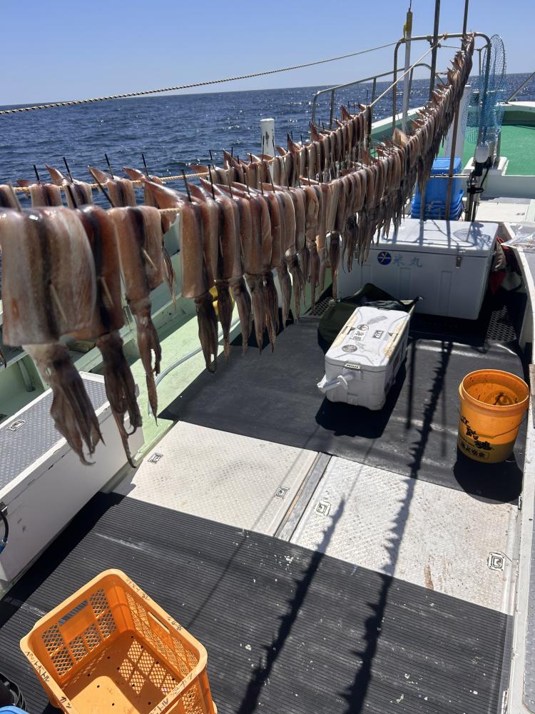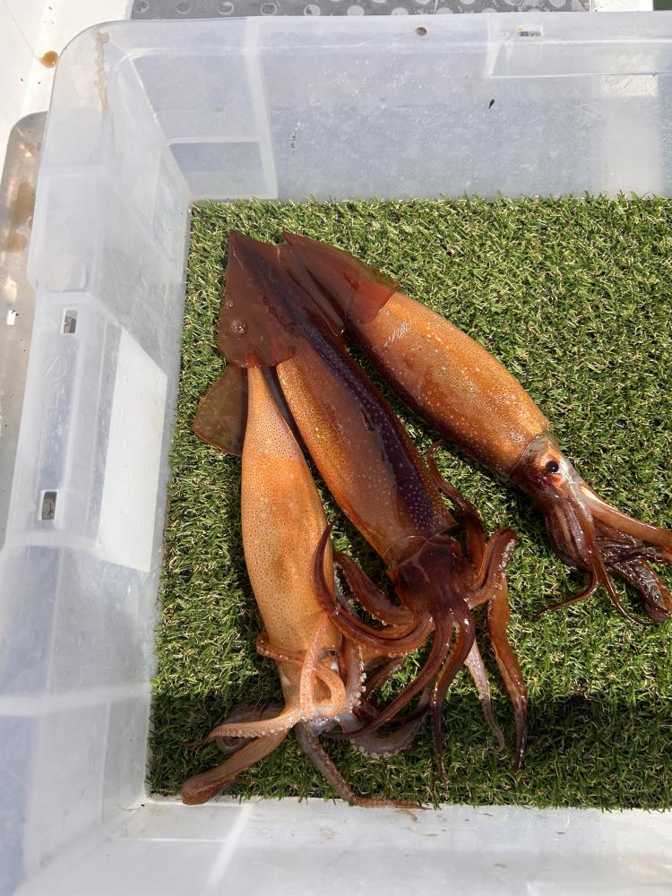 まだまだ小ぶりのスルメです!あと1ヶ月もすれば育つかなぁ??水温も低くく水色も悪く浅場で160〜170メートル35〜68杯 これからの楽しみです